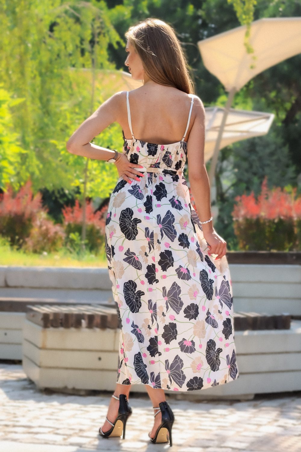 Лятна дълга рокля с презрамки принт цветя арт.1436