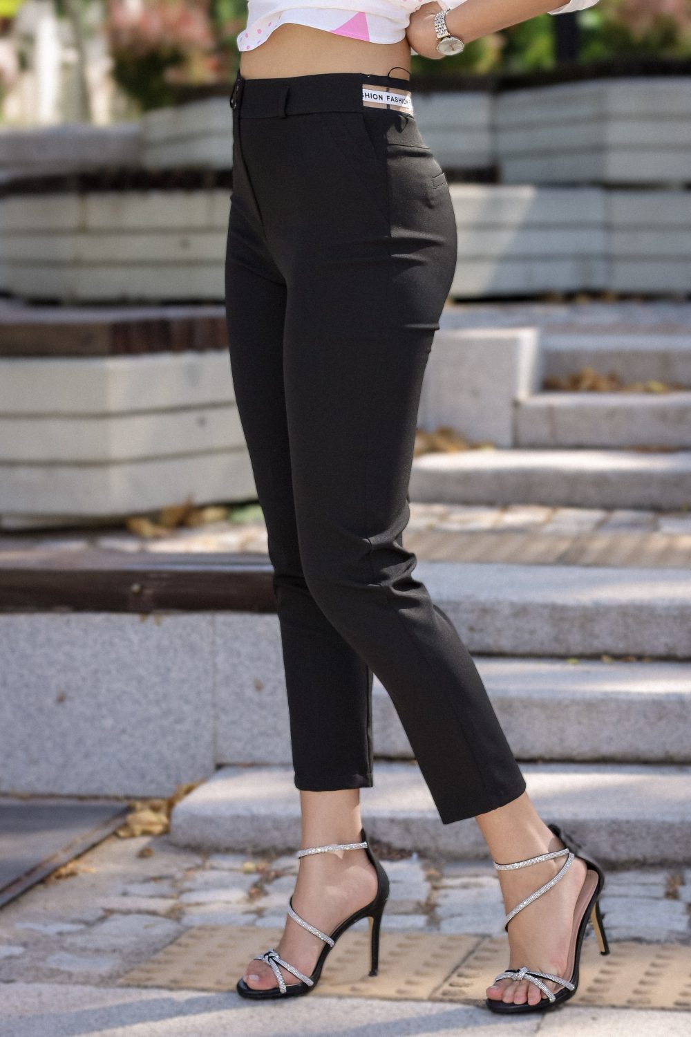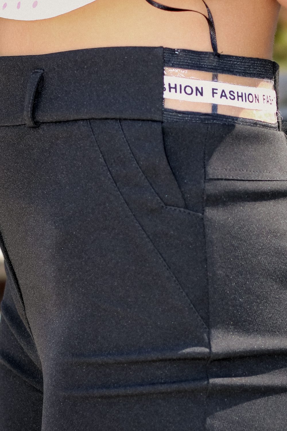 Декоративен и функционален ласичен детайл на колана отзад с надпис „FASHION“ в черно-бяло, който придава модерен акцент и осигурява комфорт.