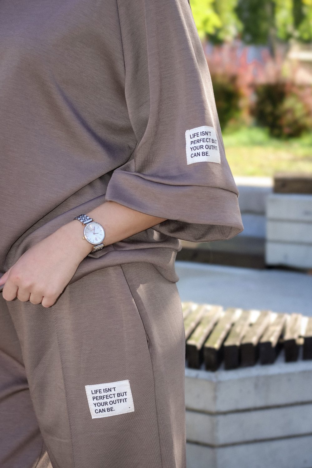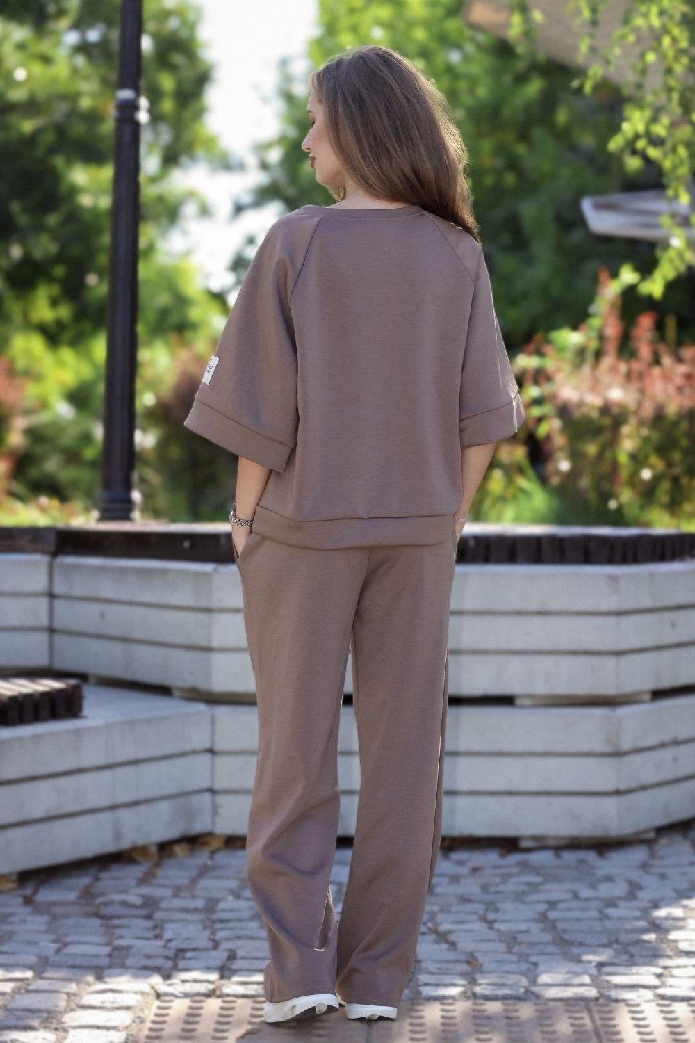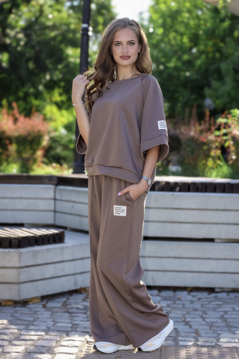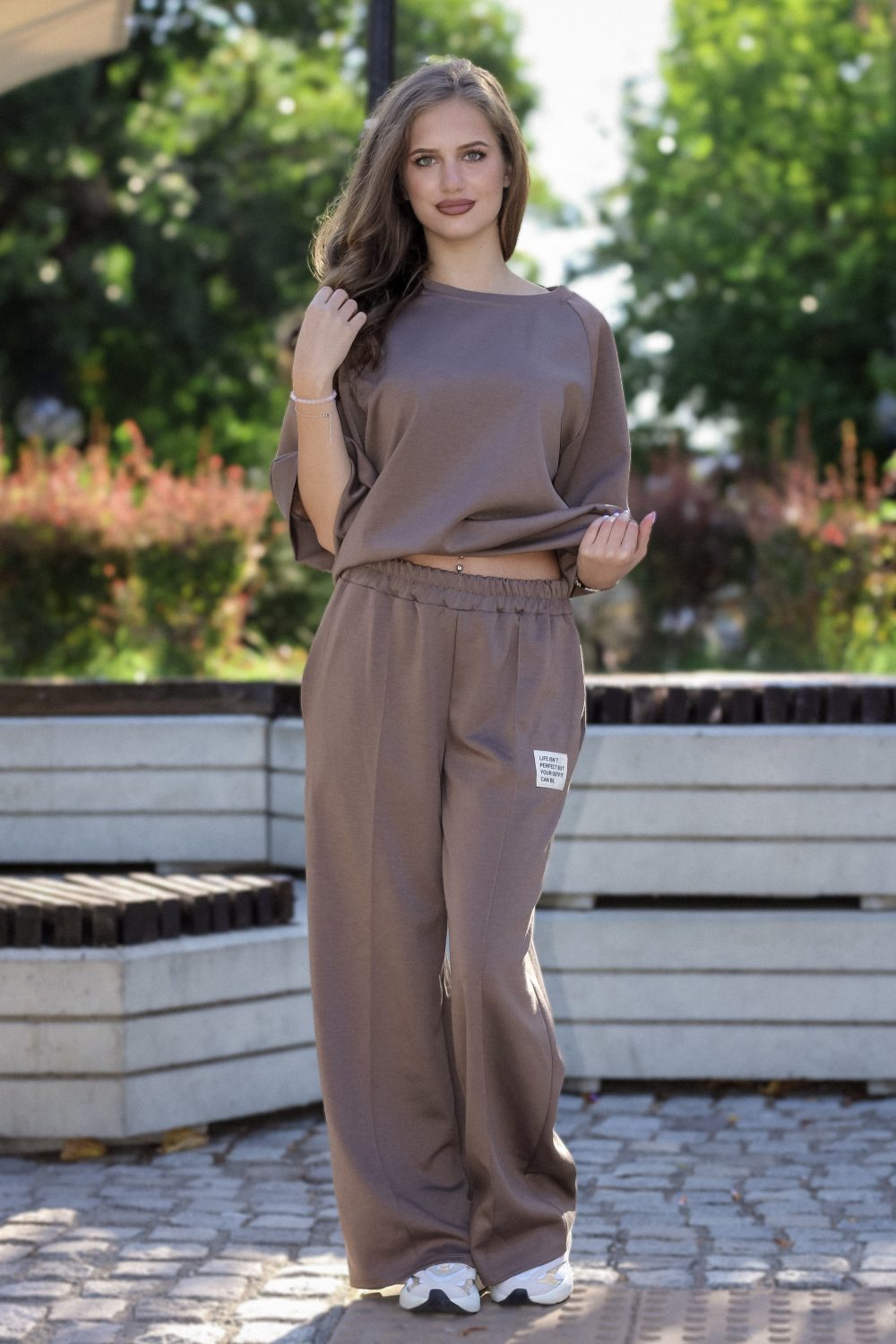 Дамски спортен комплект “Relax” от две части: суичър с широк ръкав и палацо панталон в кафяво арт.1469