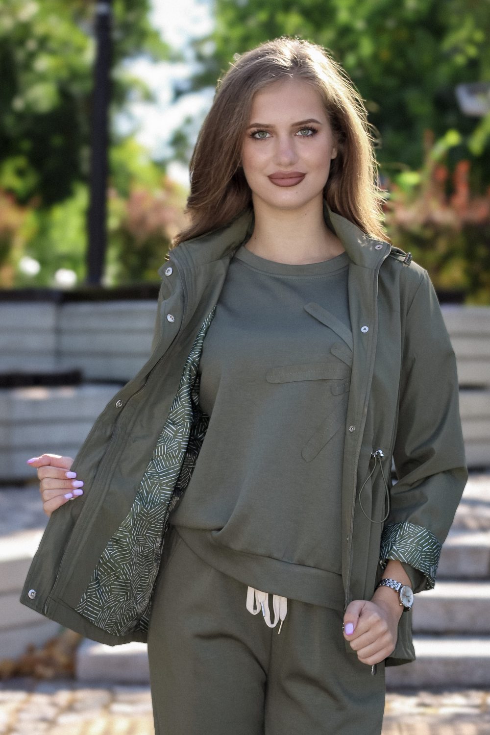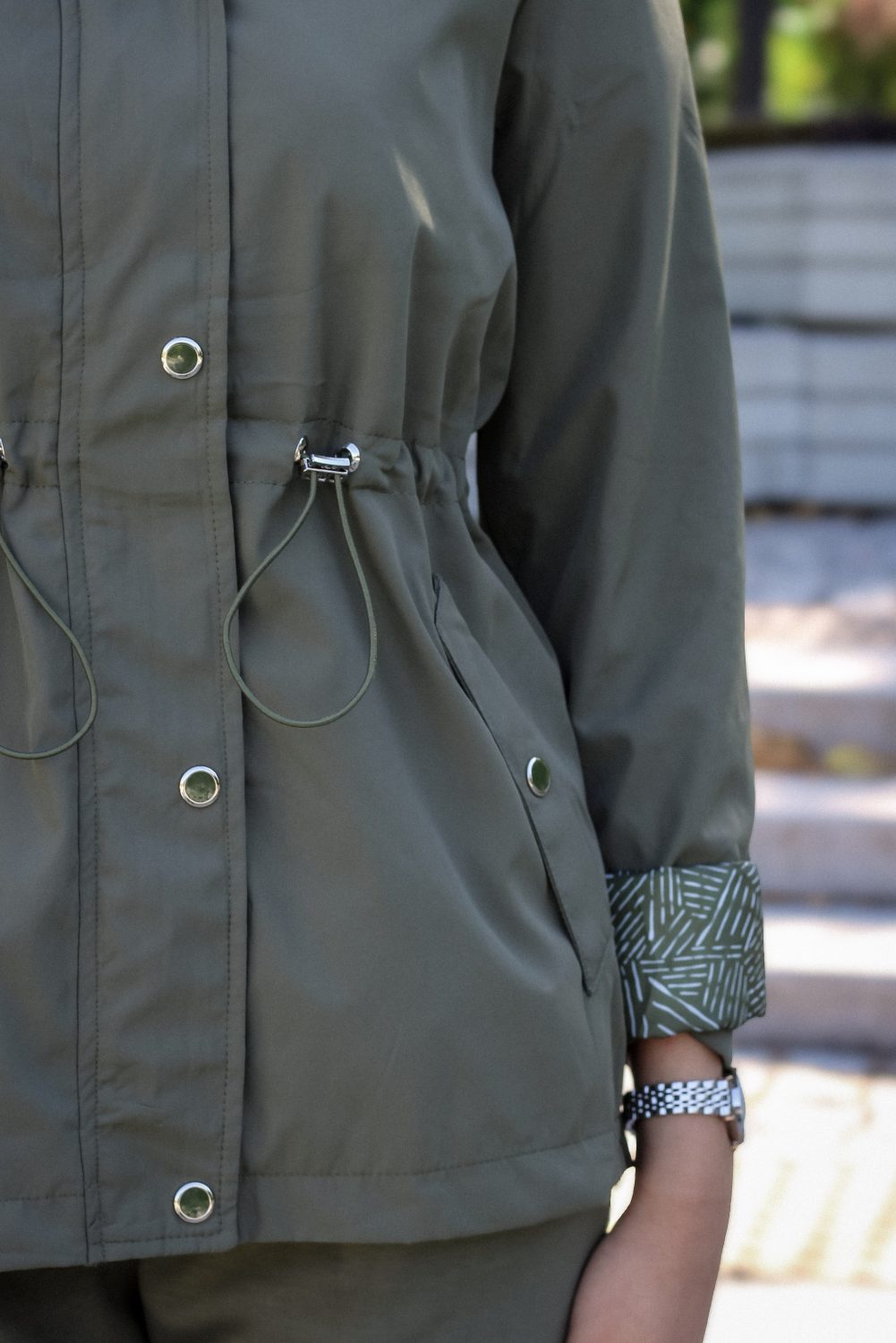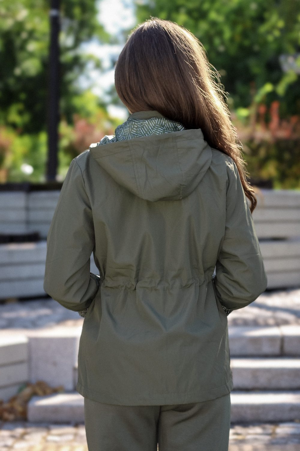 Дамска ветровка “Urban Hunter” с качулка, регулируема талия и принт подплата в цвят каки арт.1476