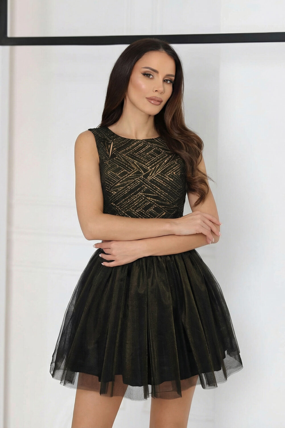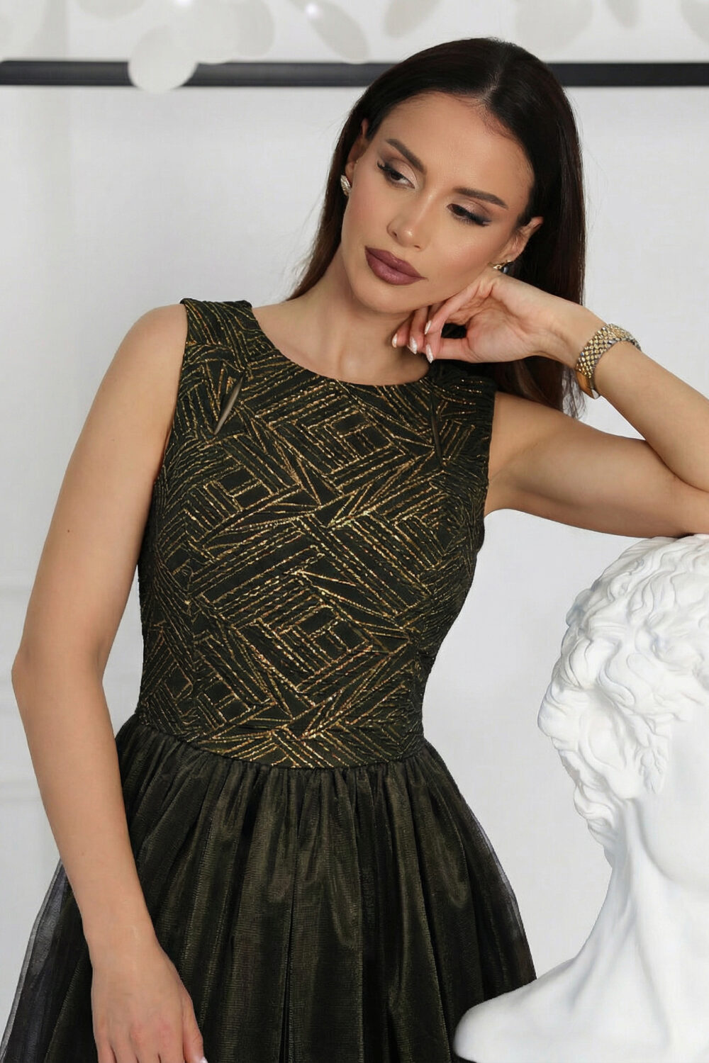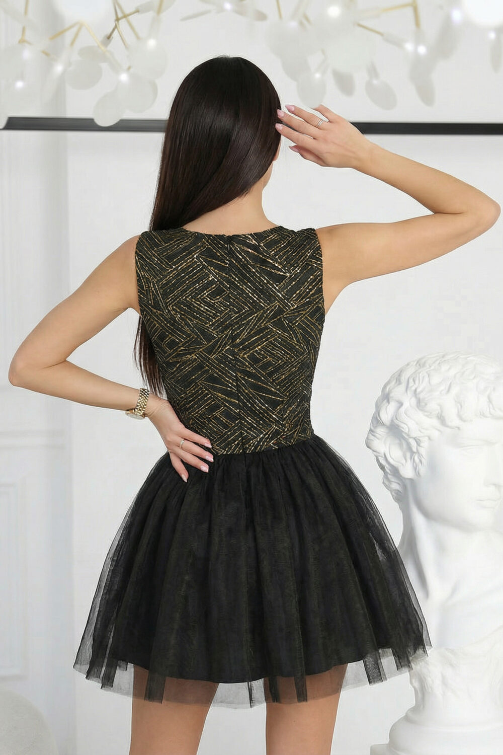 Рокля “Golden Geometry” – черна тюлена рокля със златен жакард арт.1500
