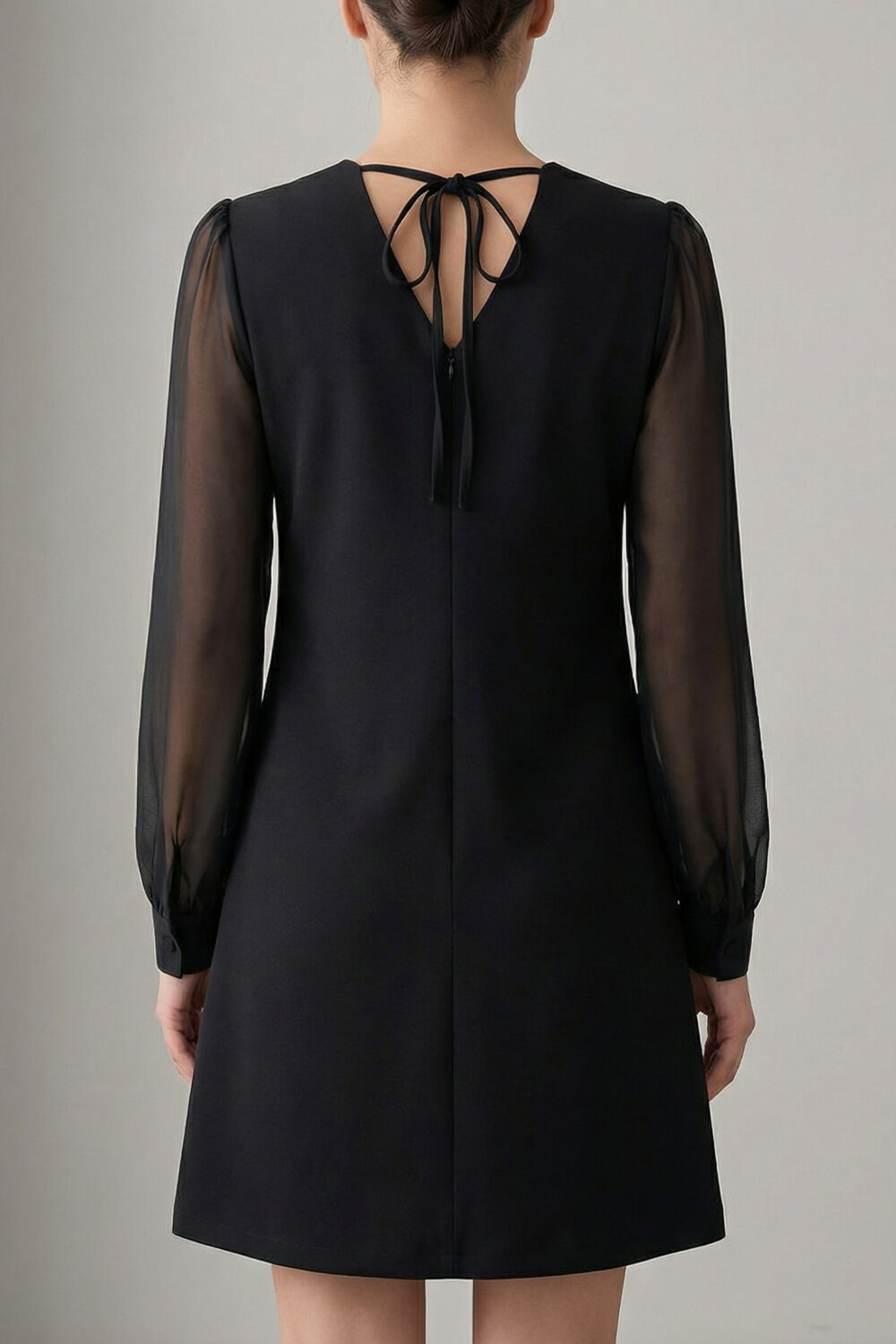 Рокля “Velvet Bows” – черна рокля трапецовидна кройка с панделки и прозрачни ръкави арт.1786-1