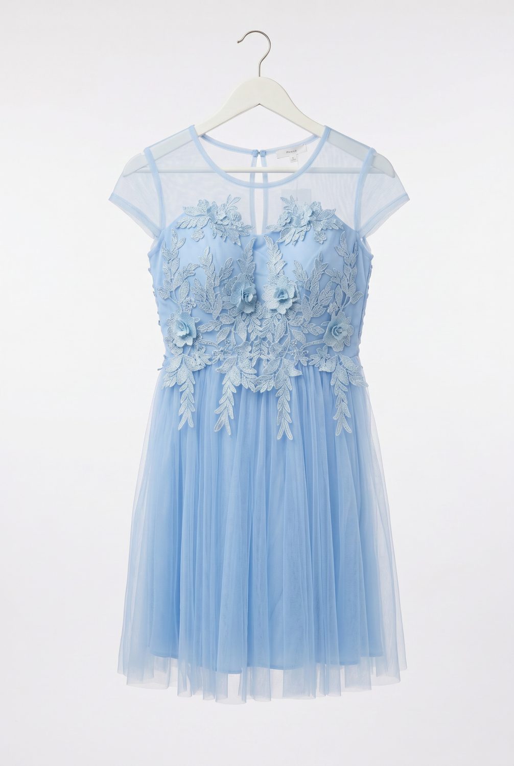 Цвет: Светло син – нежен, ефирен и подмладяващ Стил: Елегантен и официален – подходящ за кръщенета, сватби, празненства, фотосесии и високи поводи Горна част: