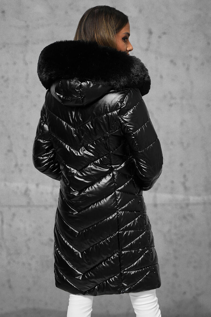 Дълго черно ватирано яке “Winter Maxi Puffer” с качулка и висока яка арт.9037